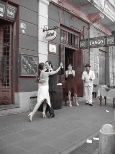 The restaurant tables spill out over the foot path and fill the pedestrian only streets. Most have their own entertainment including street side tango, and street performers.