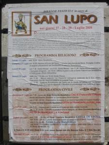 The three days of the festa include various religious and civic events, including various mass’s honoring San Lupo, public concerts of classical music in the piazza, fireworks, processions through the town and the obligatory markets and food stalls.