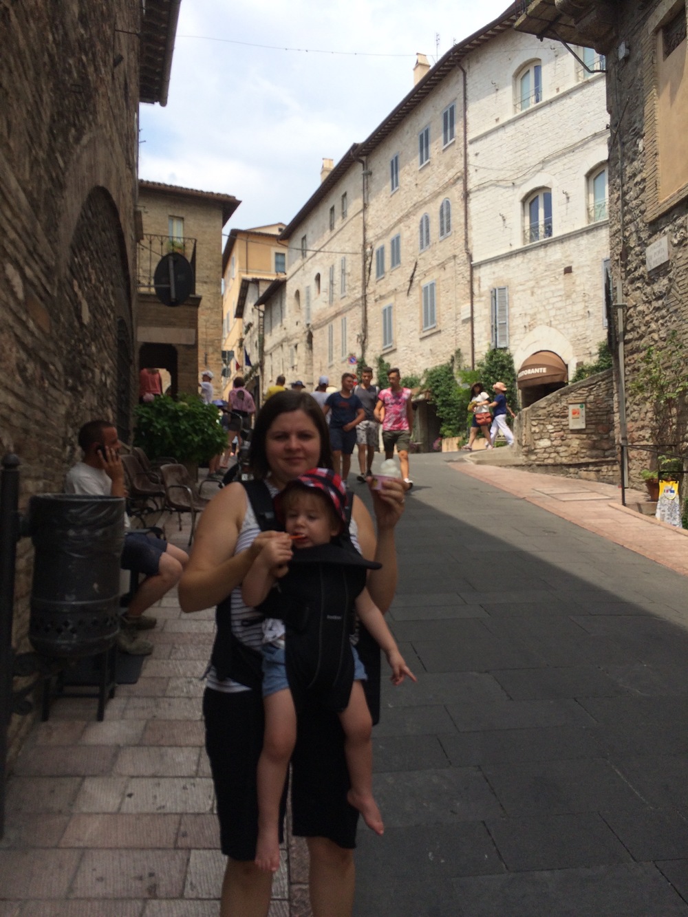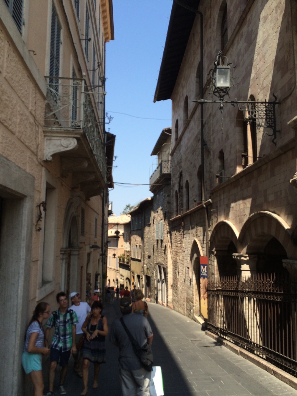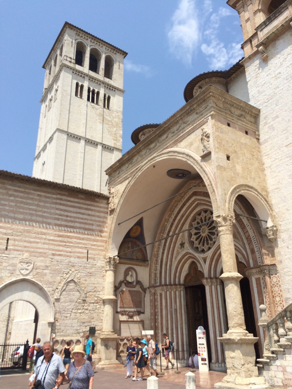 We left the cars and started walking down the hill through the beautiful (but very hot) streets of Assisi. We wandered our way down to the bottom of the hill and ended up at the Basilica of San Francesco d’Assisi.