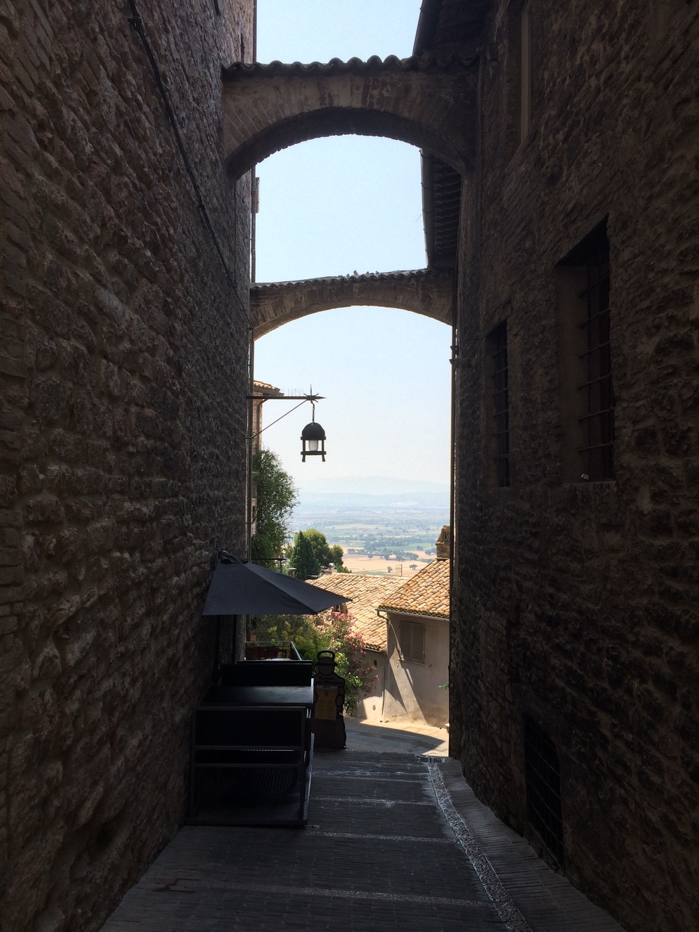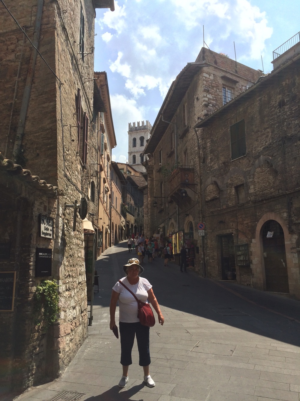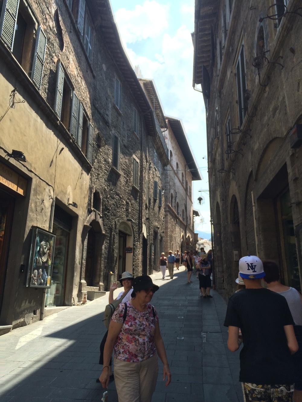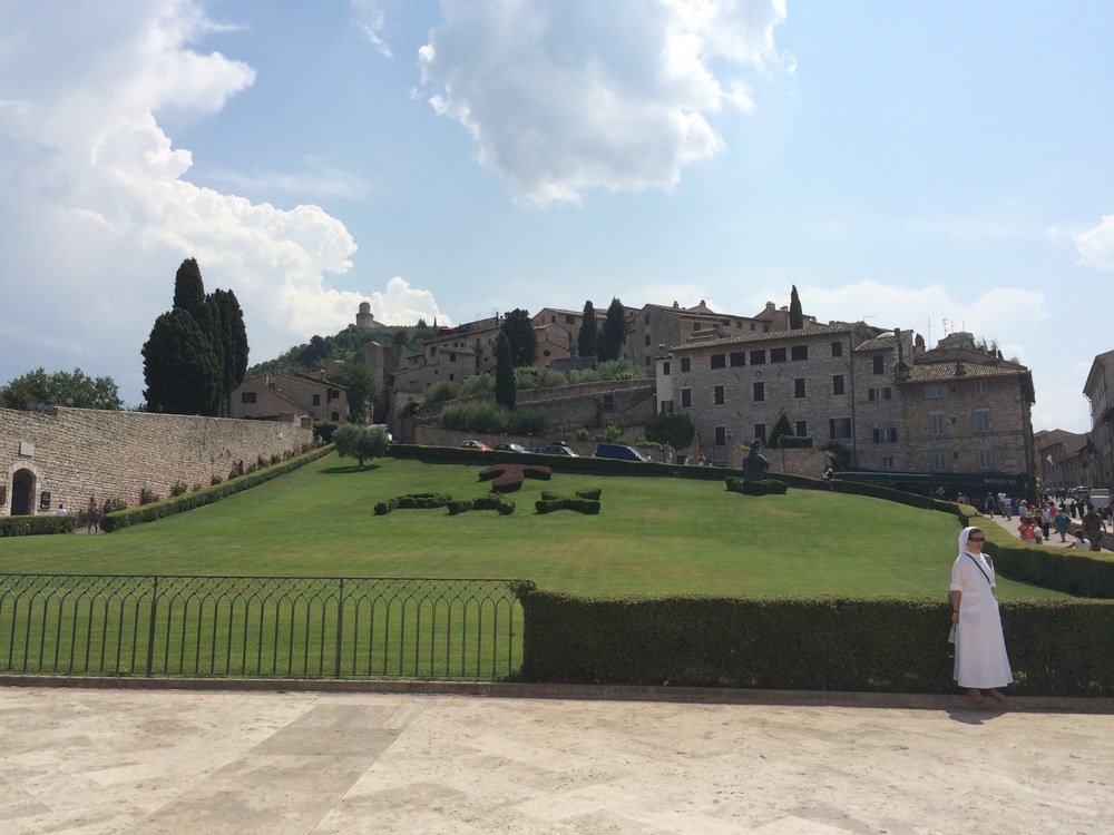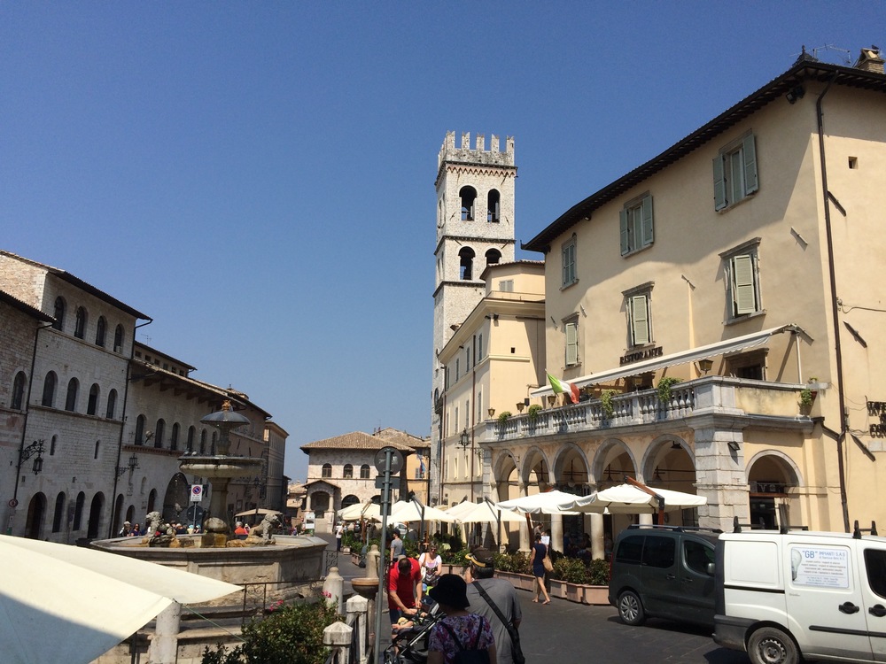 The goat track wound us slowly around and up the side of the hill leading to Assisi. We eventually popped out on the side of the main road where we more comfortably continued heading to the top of the hill found a carpark in Piazza Matteotti.