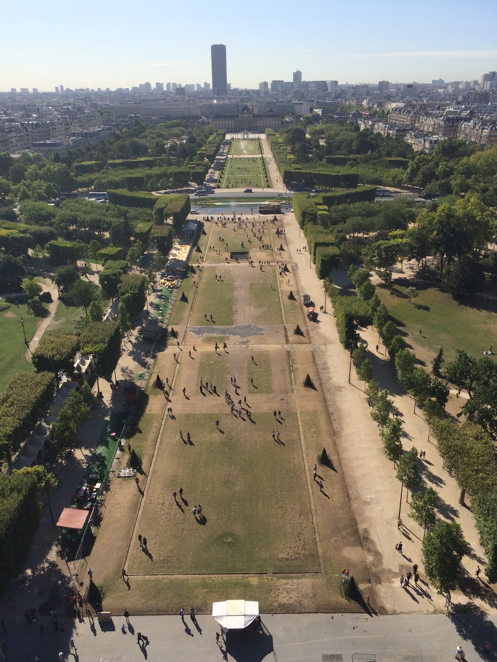 It wasn’t long before the Eiffel Tower appeared from behind the many other tall buildings along the street - at least we were on track. A pleasant walk through some gardens brings us to the base of the tower - and its only 9:15am… We made it in pretty good time - only 20 busloads of people in front of us.