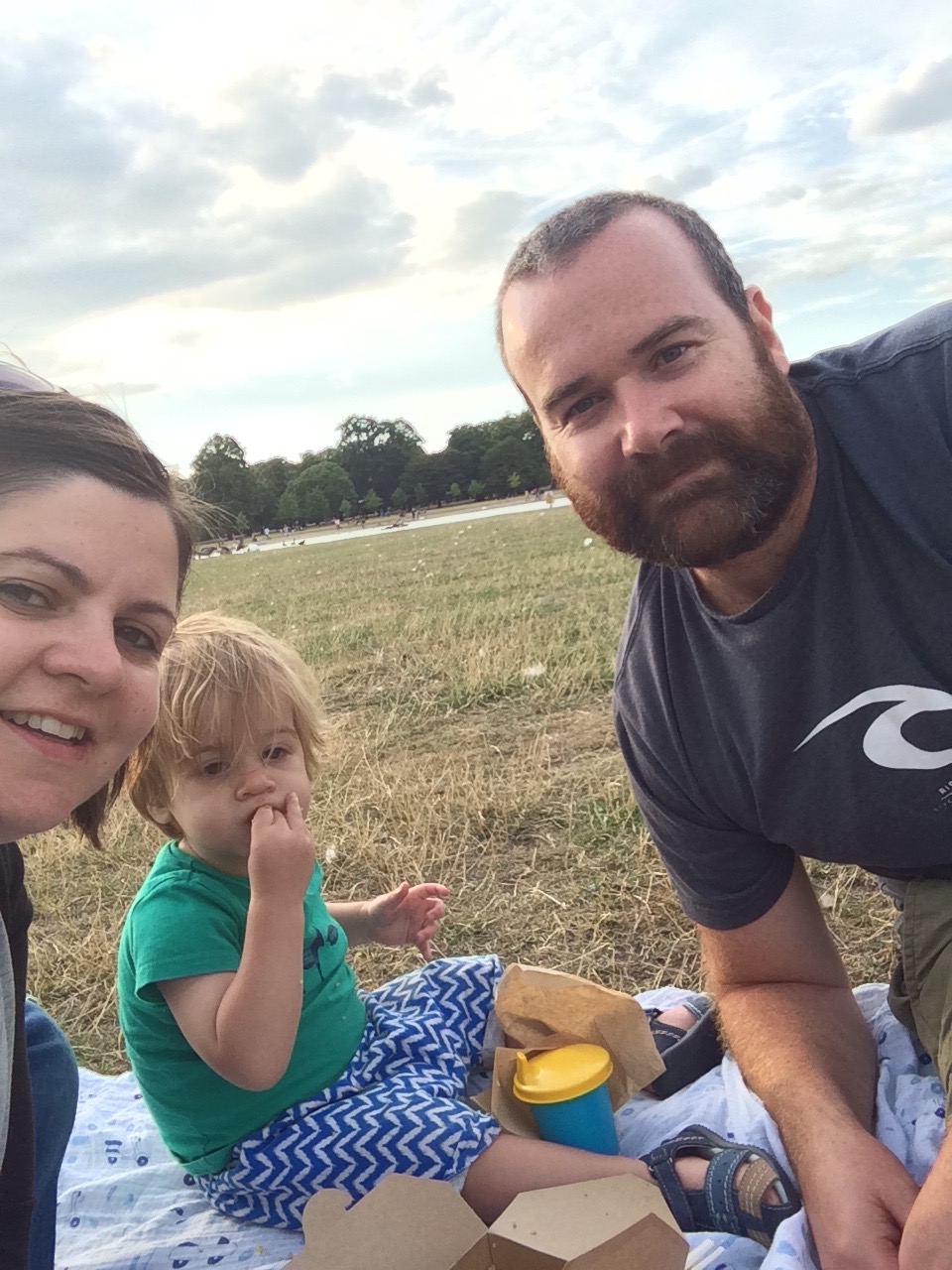 On the last two evenings we have enjoyed having a picnic dinner in Kensington Gardens, right at the back of the Palace – Archie has become quite fond of the ducks at the big pond.