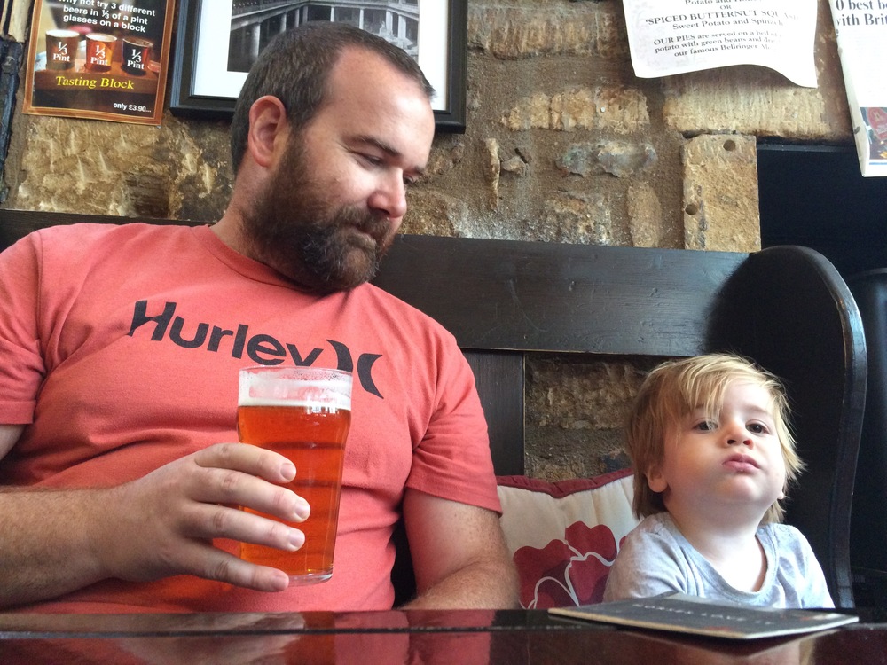 Laura and Jo went to the Jane Austin house, while Archie and I went to check out the smallest pub in Bath and have a local pint. Small was right – no room to swing a cat, let along a pram. The pram got folded up and Archie and I sat on the remaining 2-seater table next to the bar (there were only 4 in total inside).