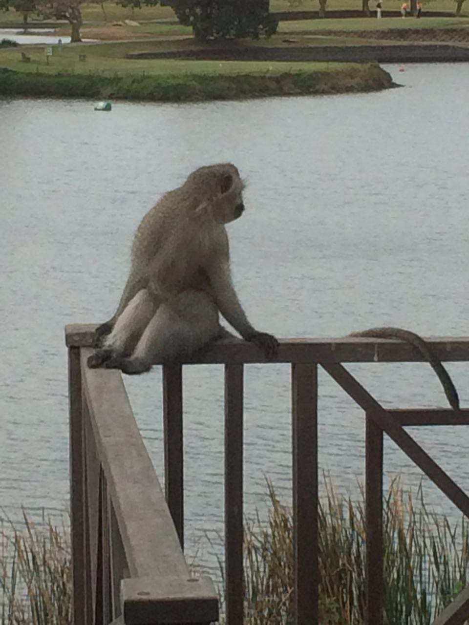 Given the nice weather, I decided that today my office would be the back deck of the hotel where we are staying it - nice warm sunshine, a good view across the lake to the 18th hole of the local golf course (looks like a lovely day for a round!) and plenty of monkeys and mongoose to keep me company.