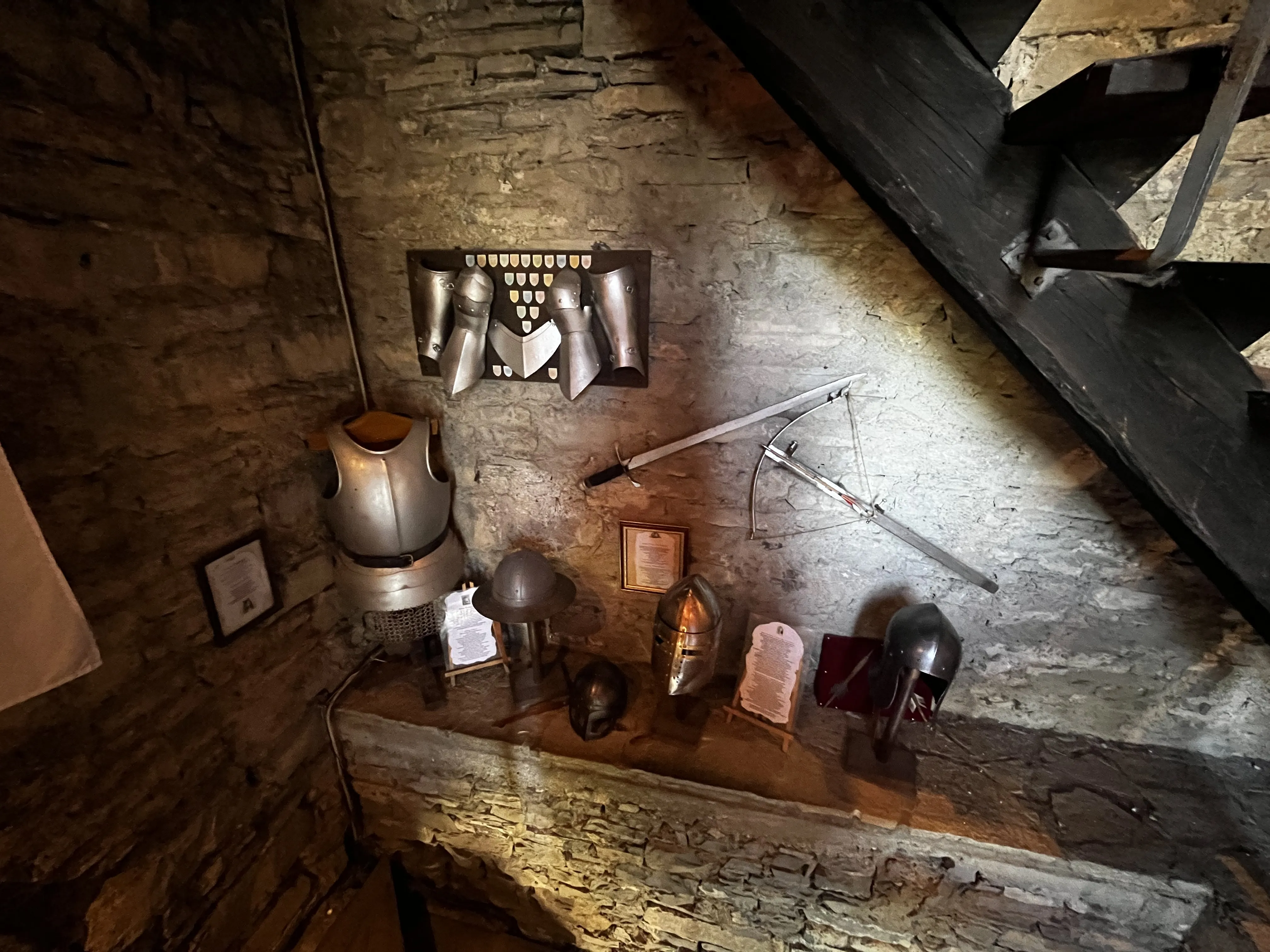 We then climbed the castle tower – five floors up. Each floor had various ornaments from the different eras of the tower. The top floor was set out like a small throne room with a fireplace. From here, we could access the top of the tower and again take in the wonderful views.