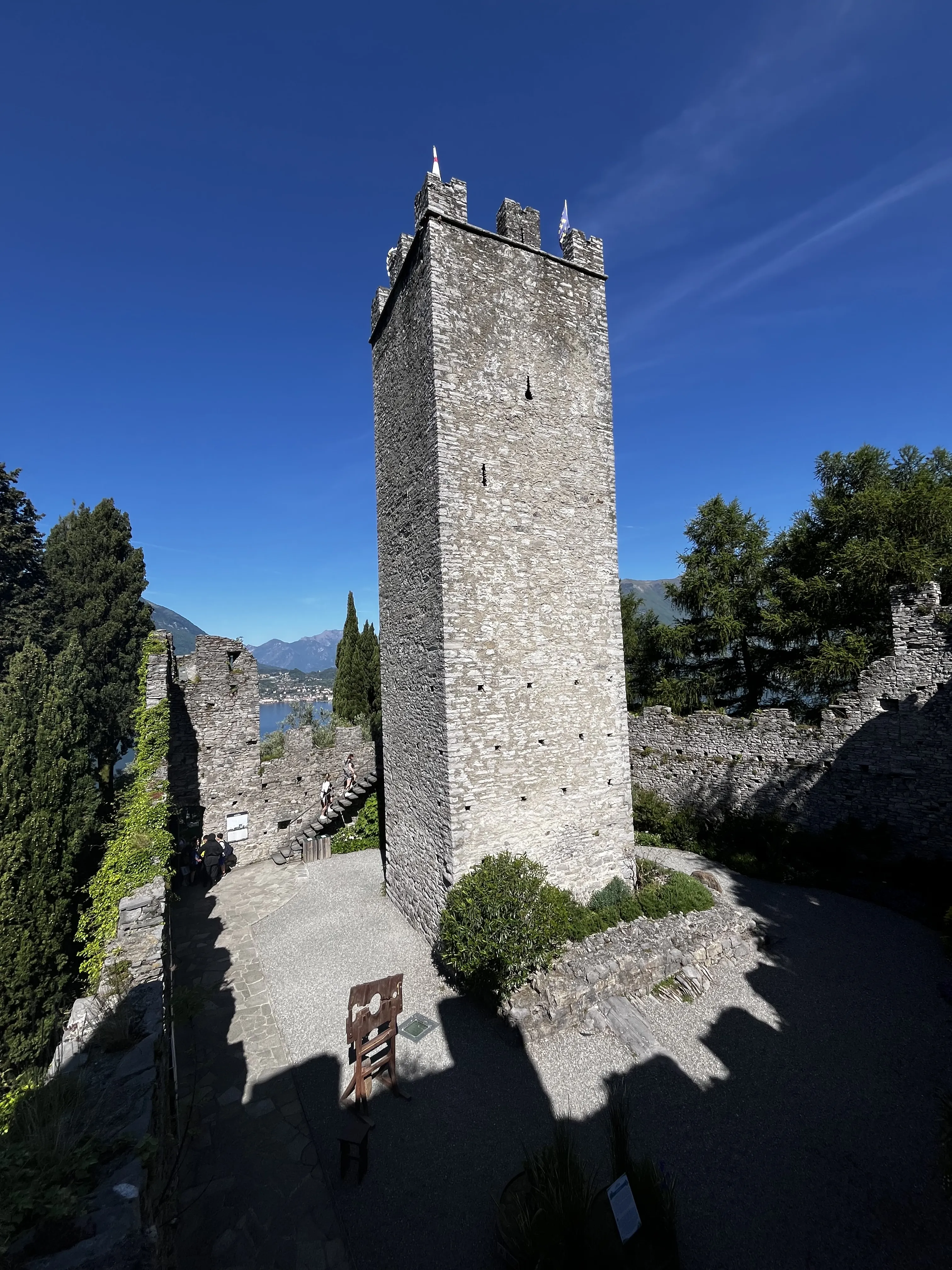 It’s clear why the castle tower was built here: steep, almost impassable mountains to the back, and views across all areas of the lake to the front and sides.
