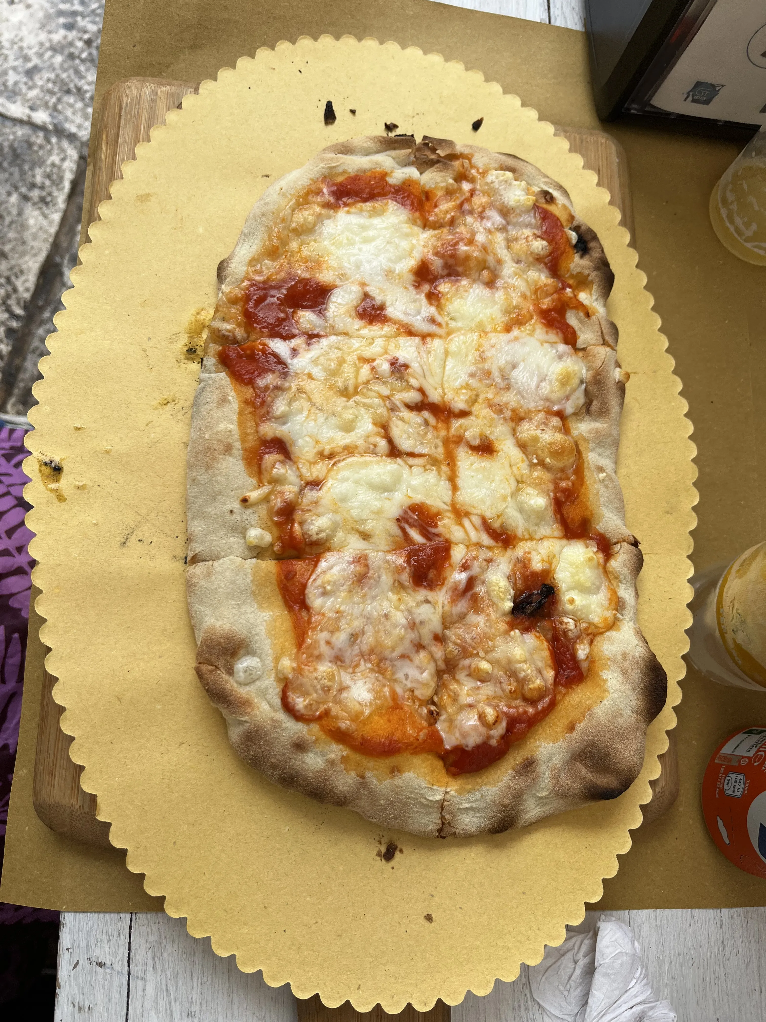 As we wandered through town, we found a nice little place for lunch: a Margherita pizza, two octopus panini (our favourite), and an octopus salad (we love octopus 🐙).