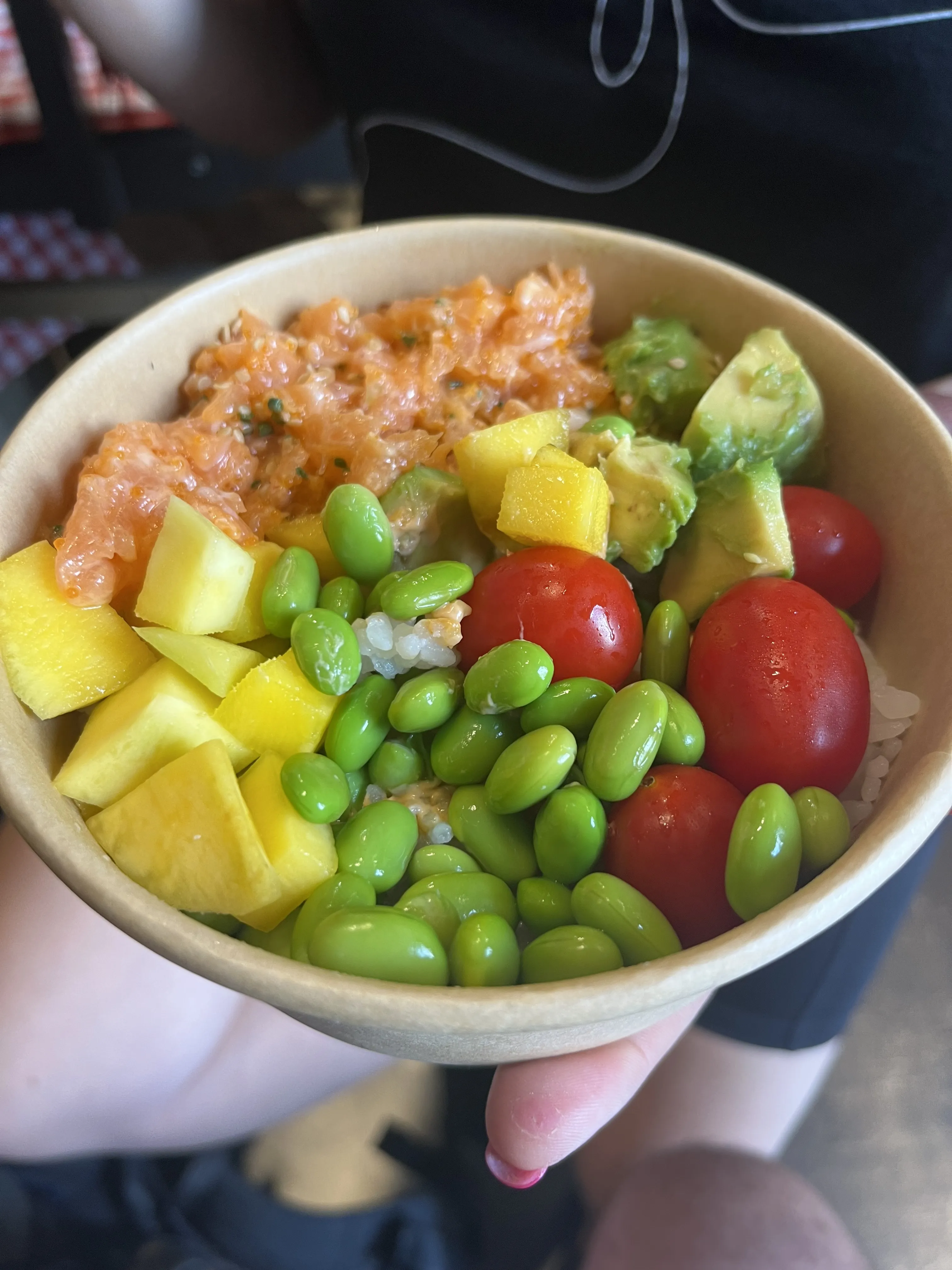 The kids are almost over pasta, pizza, and the associated derivatives. They wanted burgers. We found a burger place and ordered. Laura and I shared a salmon poke bowl and a few beers (it was bloody hot).