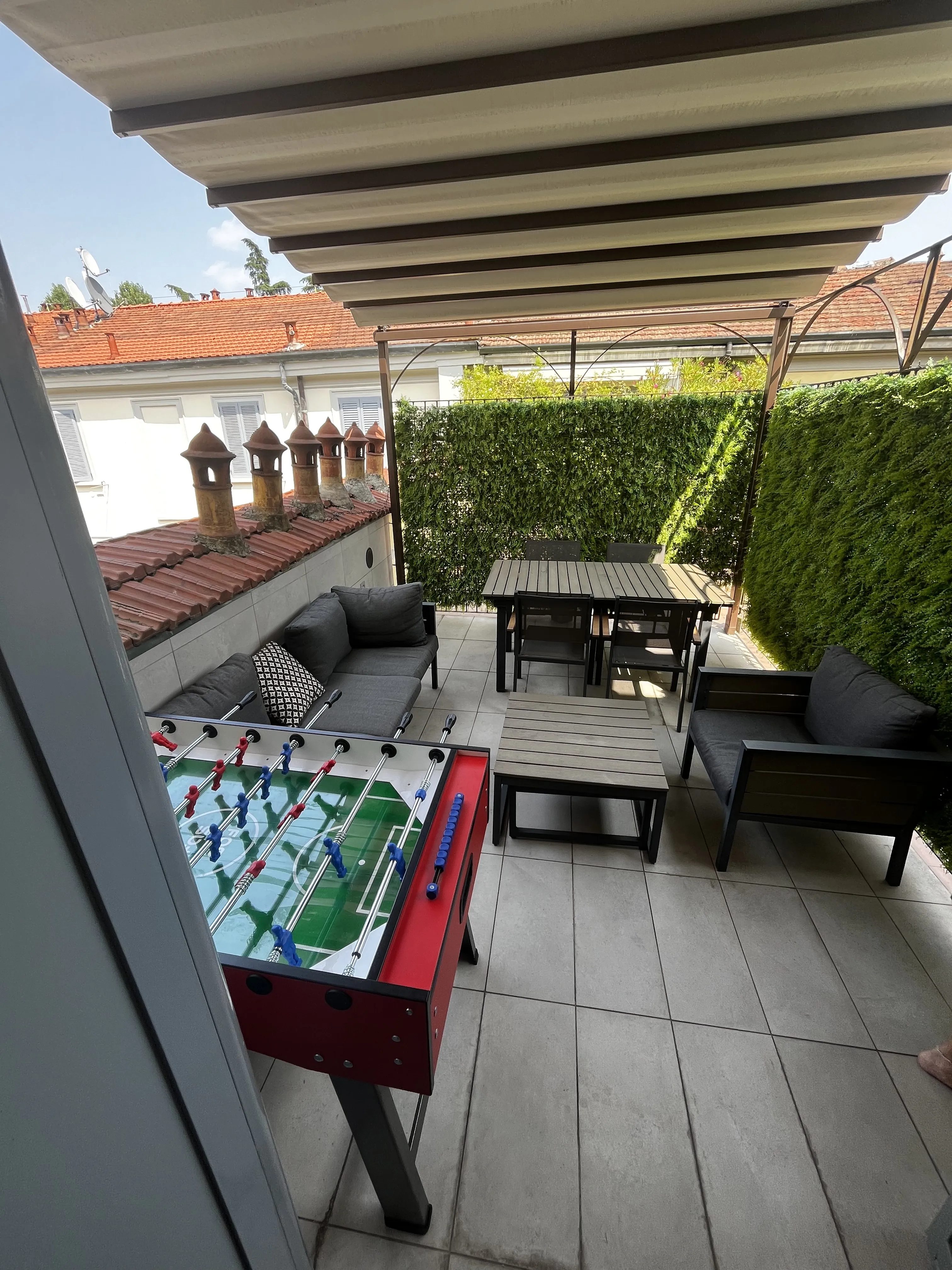 After about 30 minutes, we arrived at our stop. Music filled the air. There was a music festival (Party Like a Dee Jay) happening right on the doorstep of the apartment.