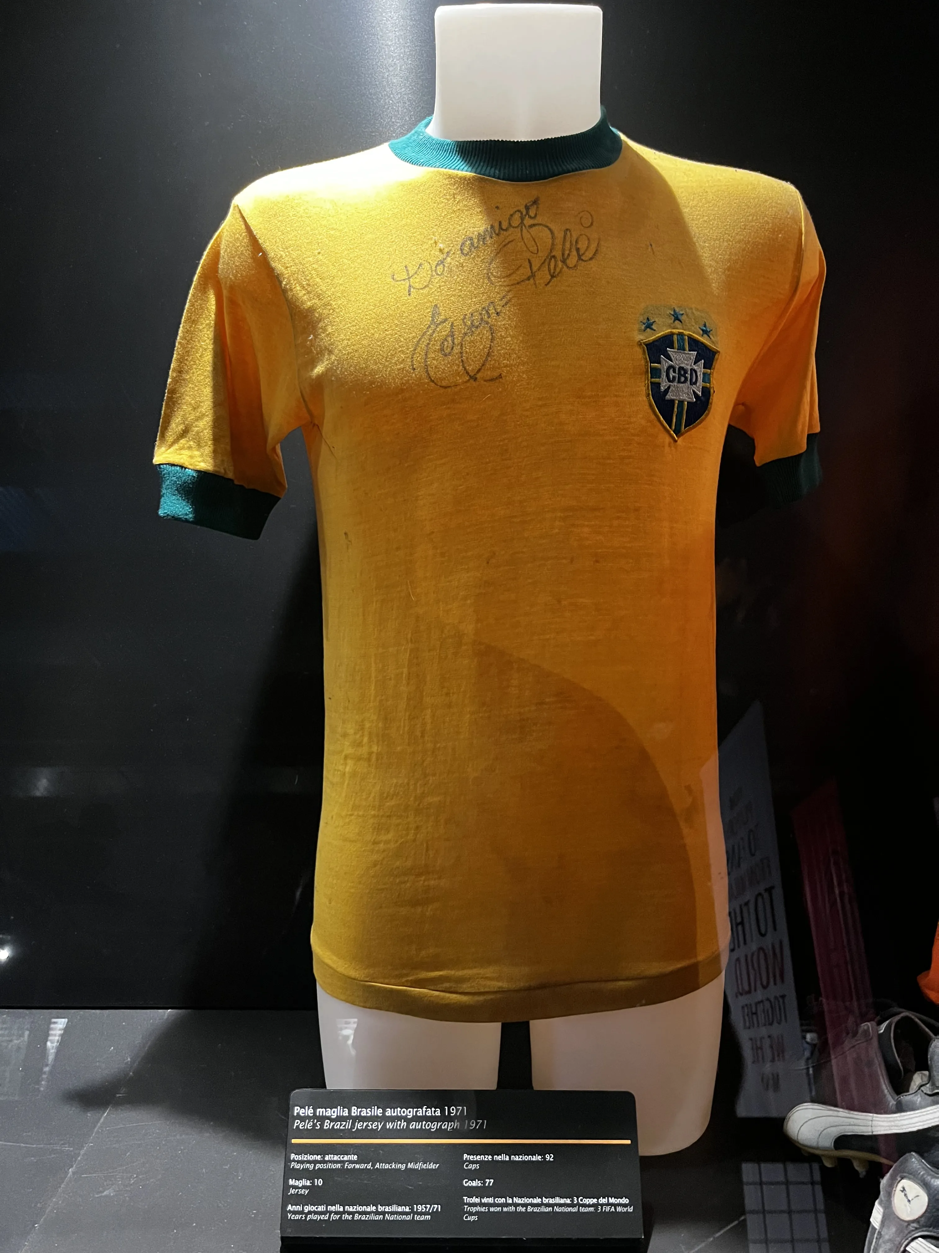 A was pretty awestruck when he saw the UEFA Champions League trophy 🏆, as well as jerseys from Pelé, Messi, and more.